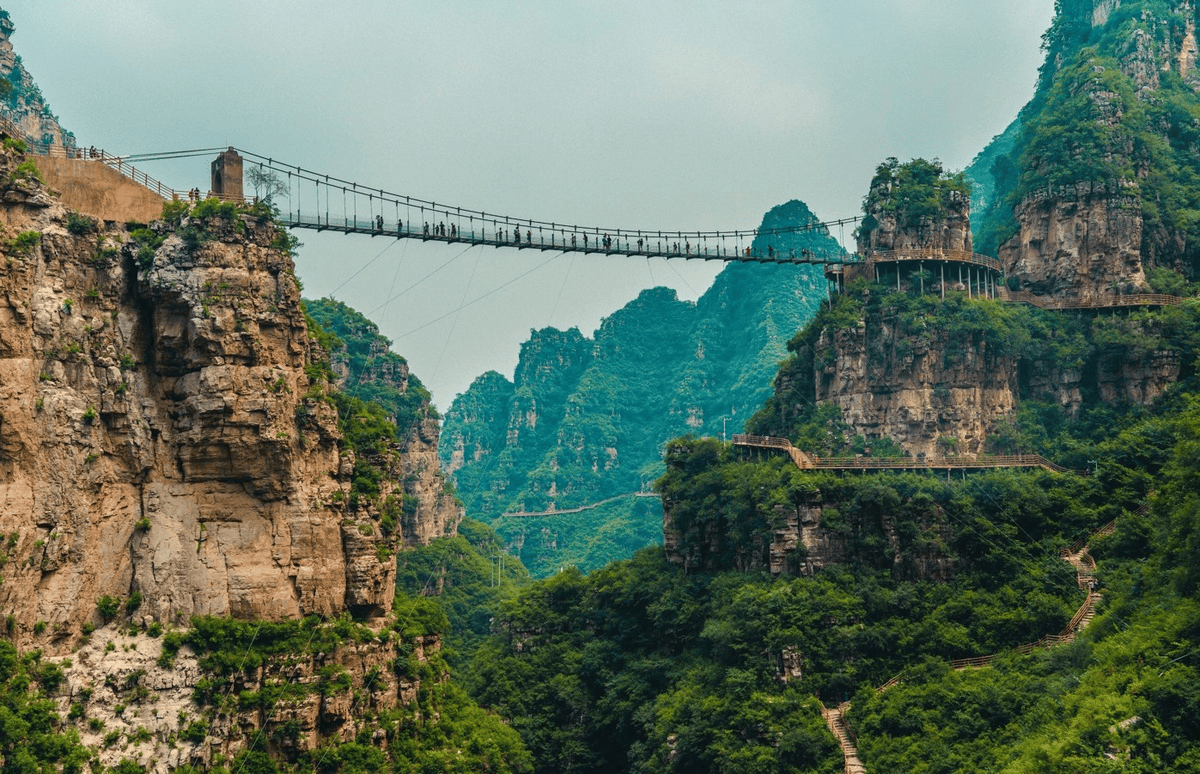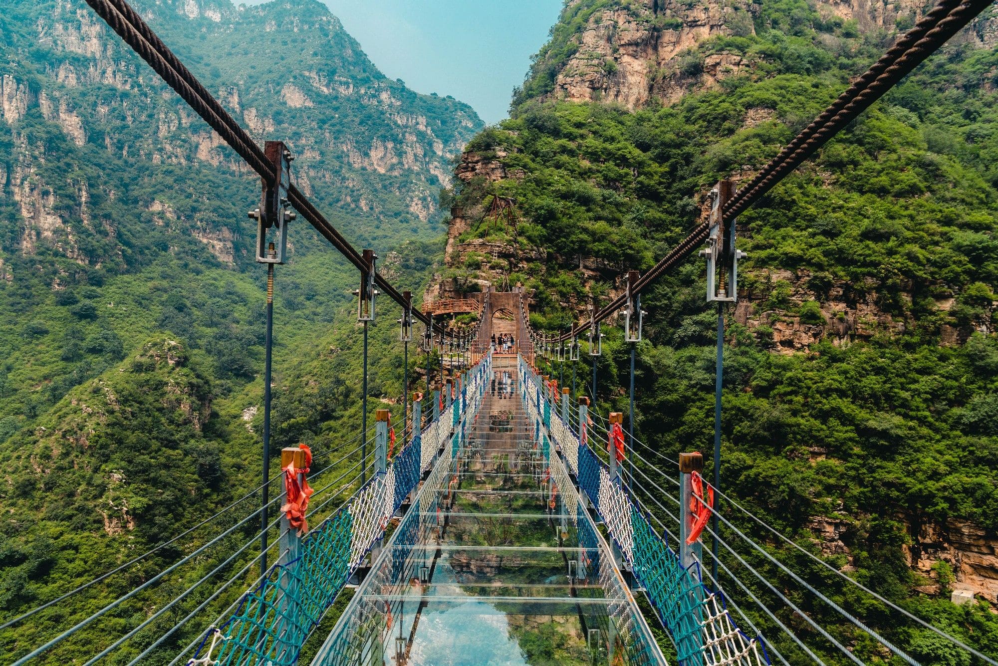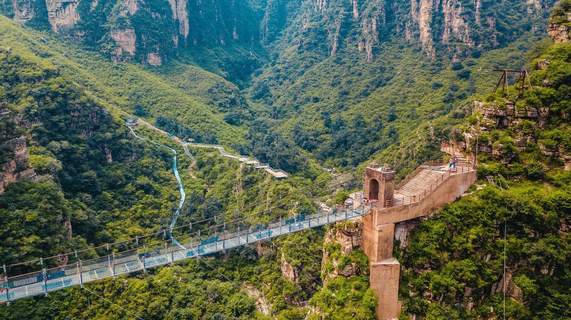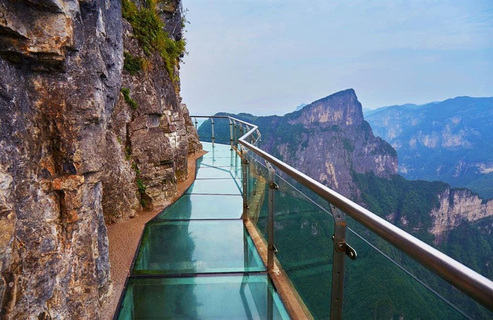 Ходьба по стеклянной эстакаде и переход по мосту длиной более 200 м над обрывом — высота около 1000 м, перепад примерно 300 м. Огромная квадратная смотровая площадка (600 м²) подарит вид, от которого захватывает дух; конструкция выдерживает одновременно до 500 человек.